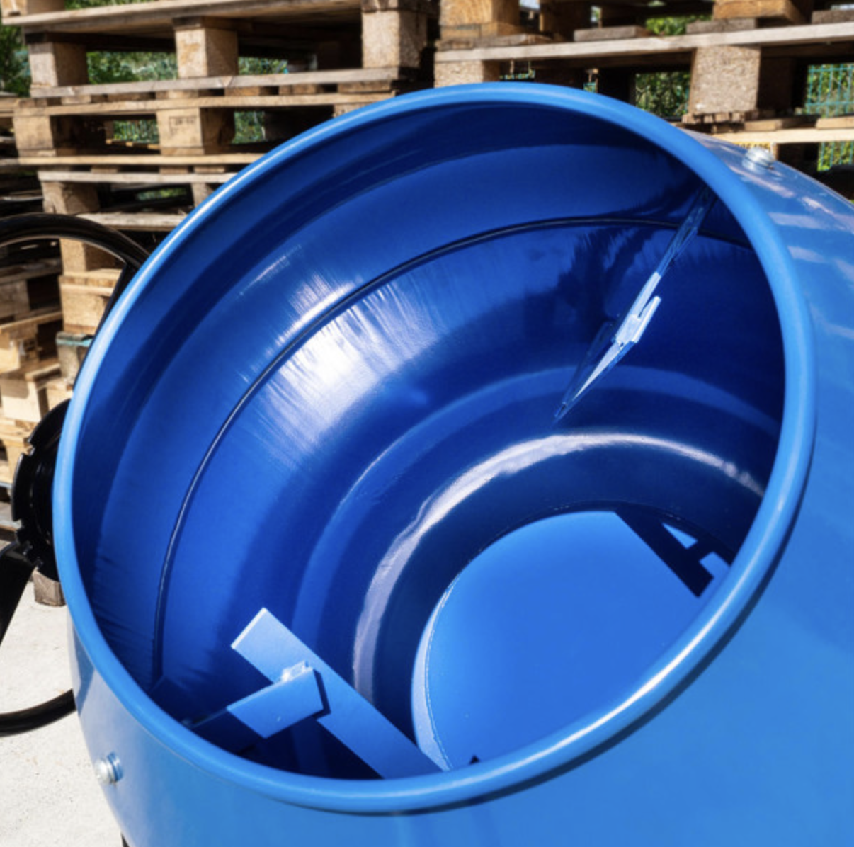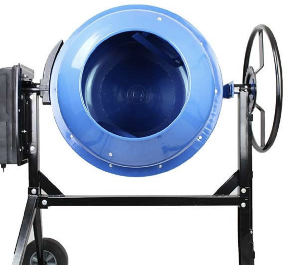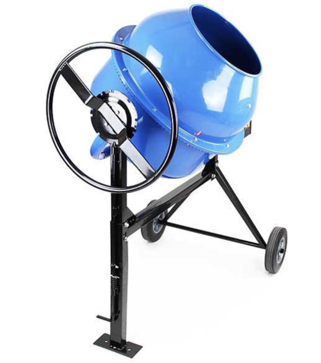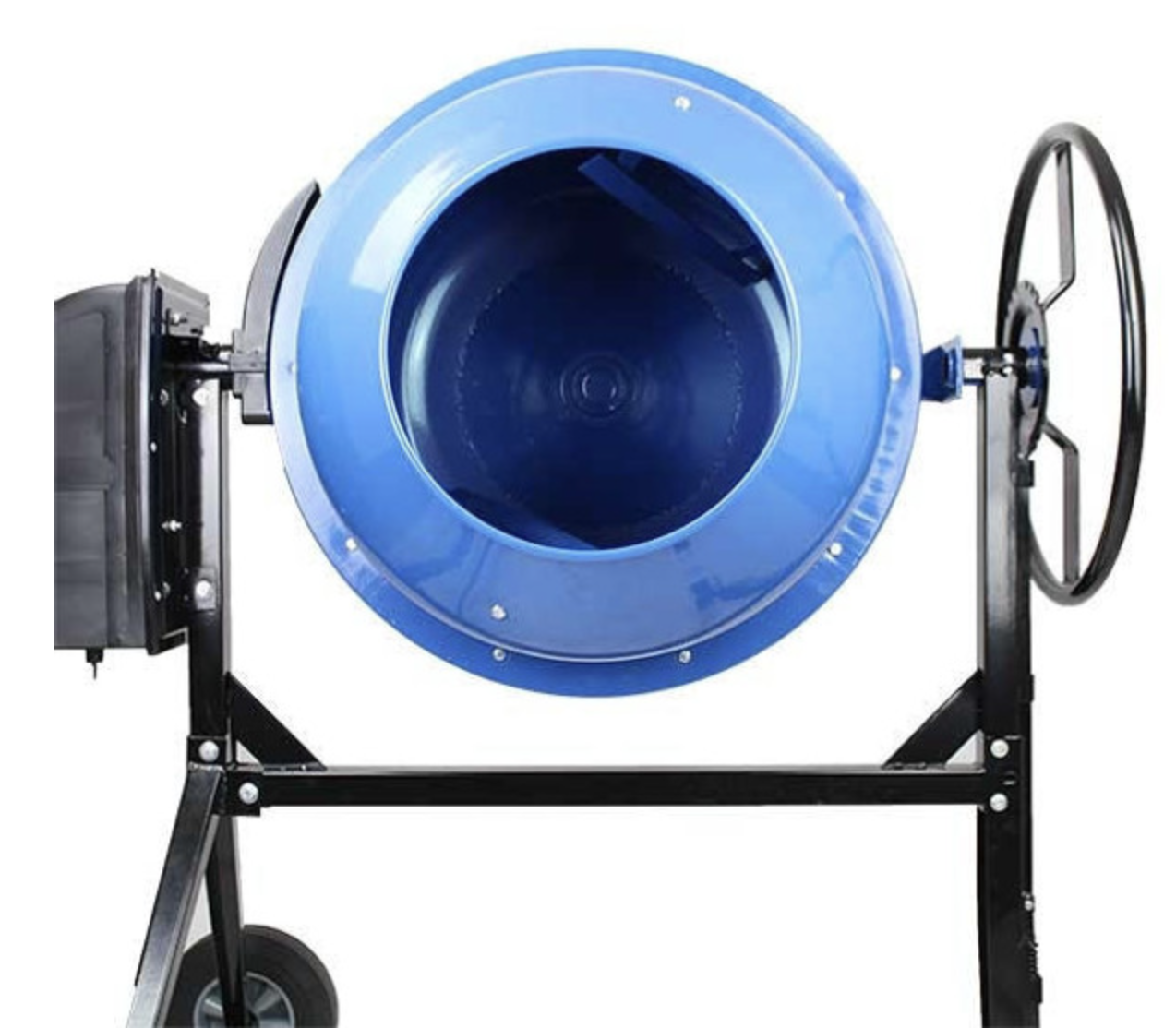 The large steel drum has a 370mm drum mouth making shoveling materials into the cement mixer much easier and avoids material wastage from missing the drum mouth, saving you money and time. The drum rotates 360º on the stand, which enables a stable, smooth tipping action and the drum has a speed of 29.5 reps per minute.