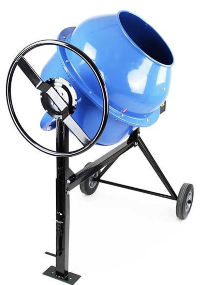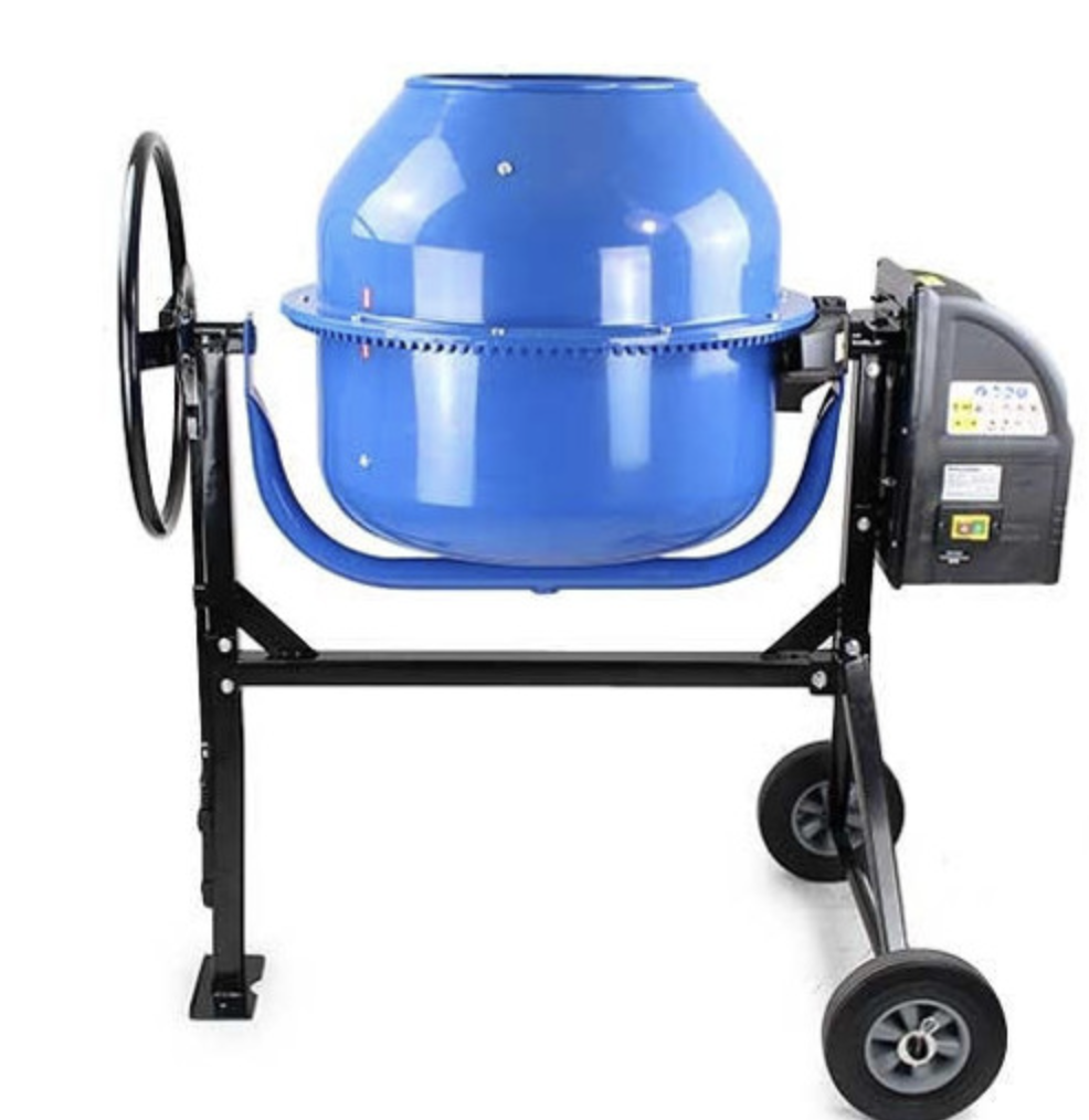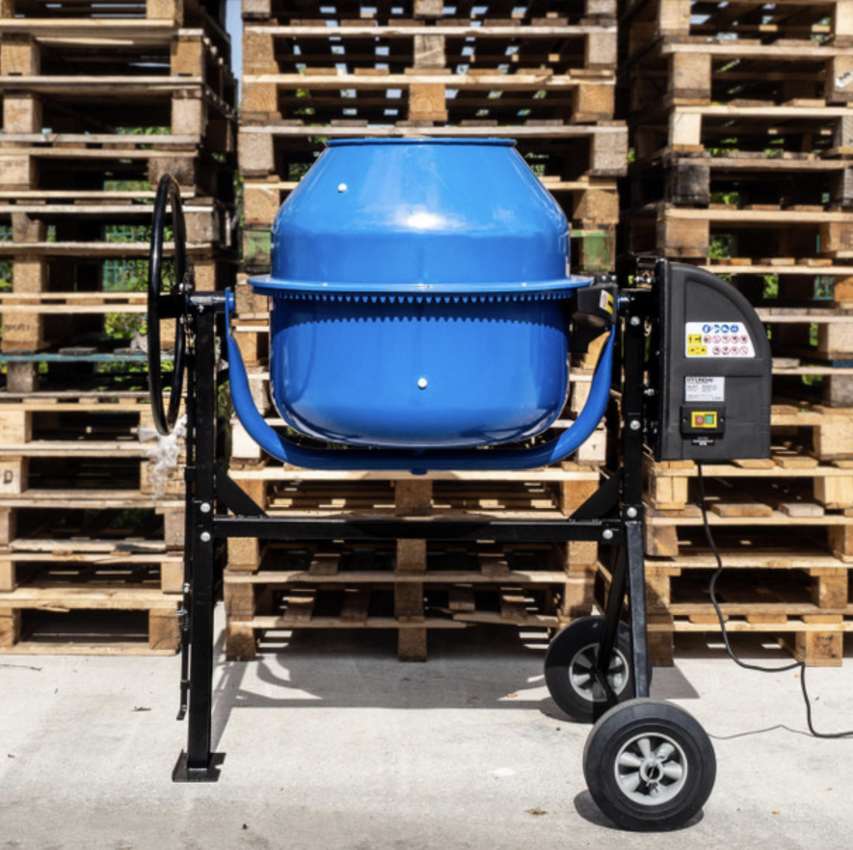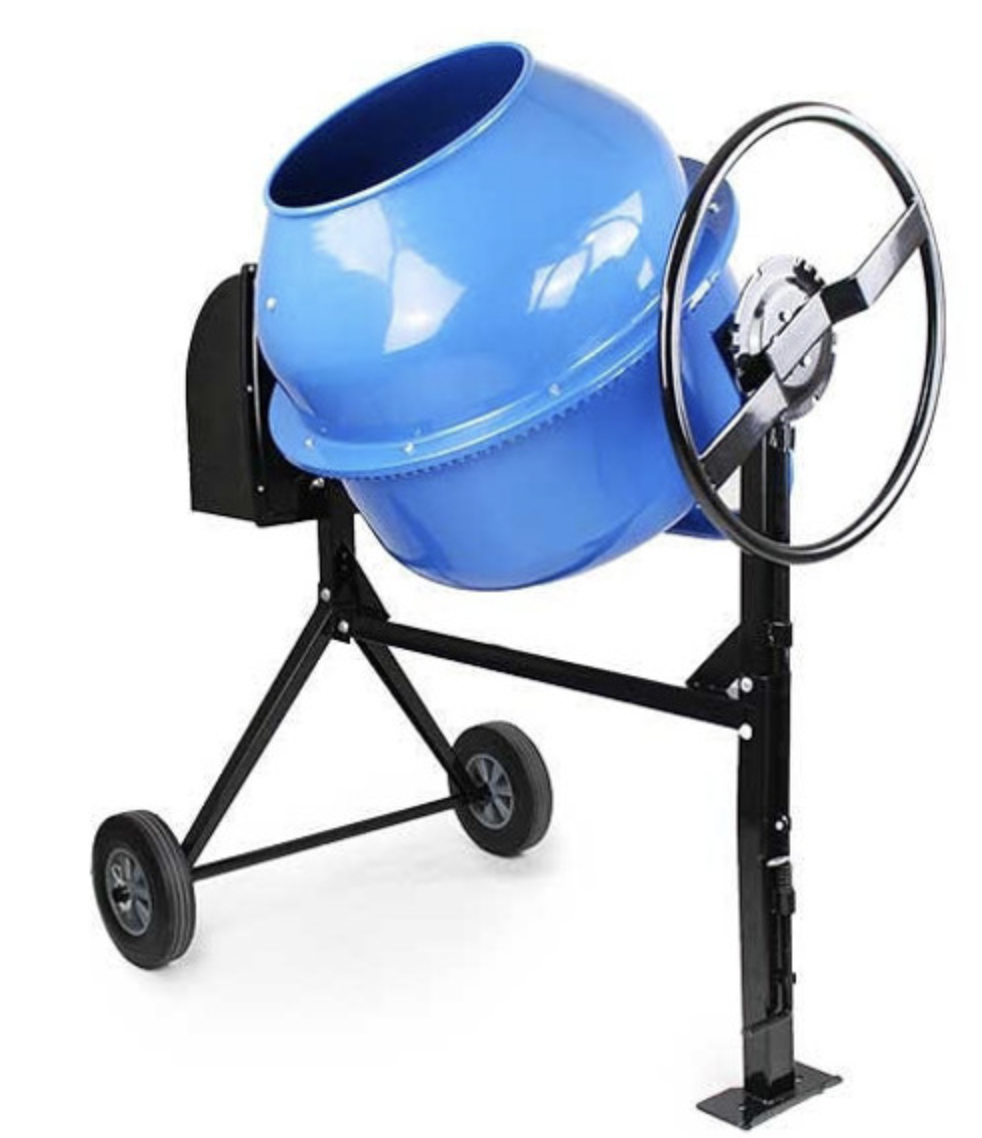 The large steel drum has a 370mm drum mouth making shoveling materials into the cement mixer much easier and avoids material wastage from missing the drum mouth, saving you money and time. The drum rotates 360º on the stand, which enables a stable, smooth tipping action and the drum has a speed of 29.5 reps per minute.