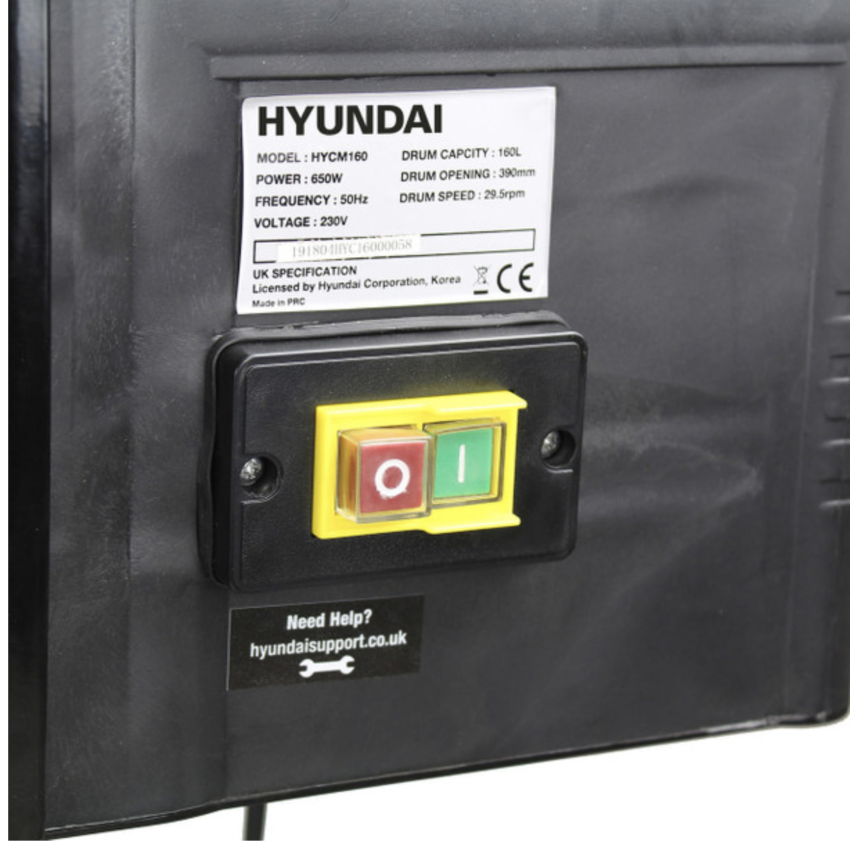 Hyundai 650w 160L Portable Electric Cement Concrete Mixer 230v | HYCM160E