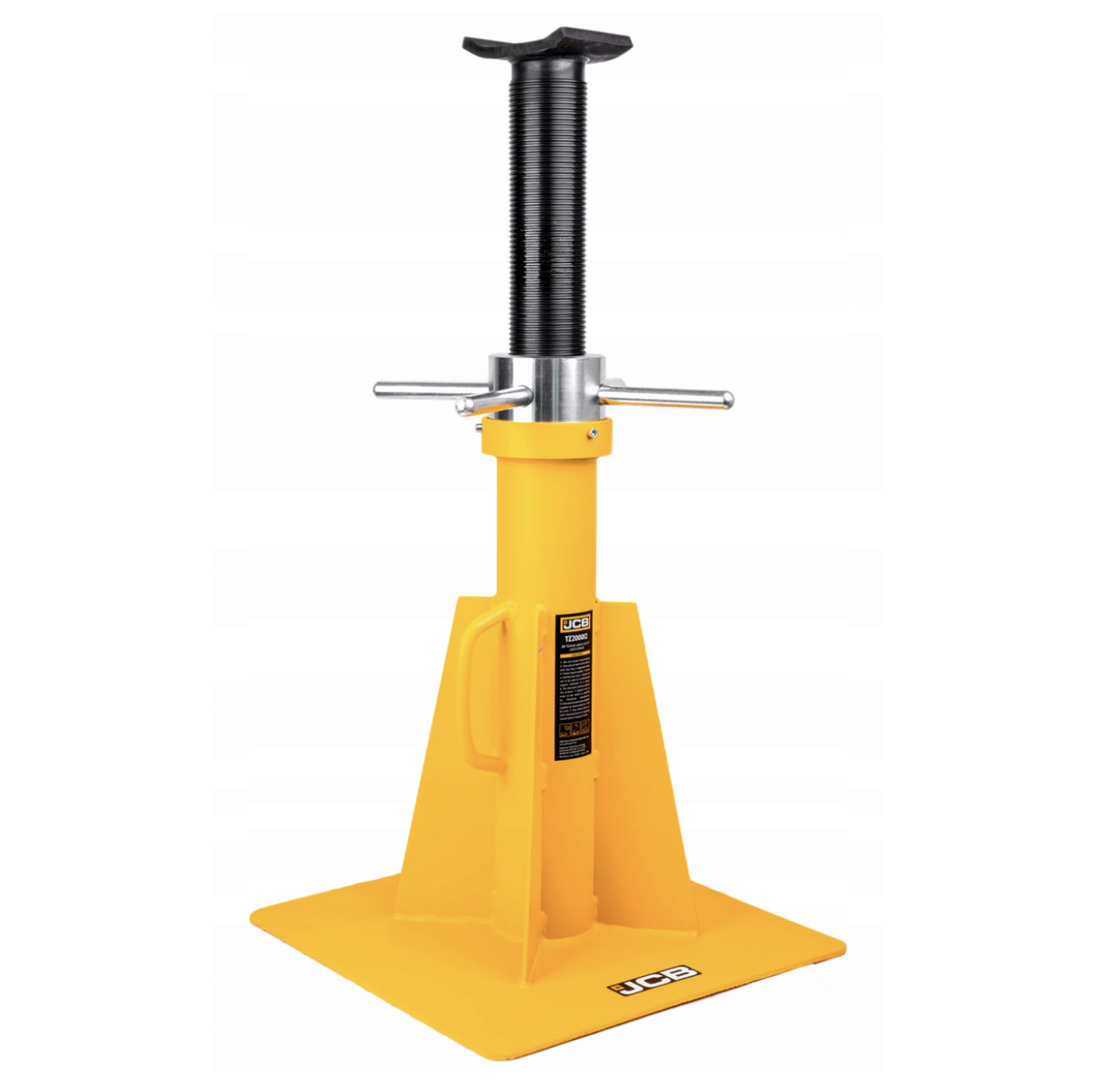 The JCB 20 Tonne Vehicle Axle stand, JCB-TZ200012 – is an additional support tool designed to maintain a vehicle at the required height with a maximum weight capacity of 20 tonnes. It is used in conjunction with various types of jacks, lifts, and similar equipment.