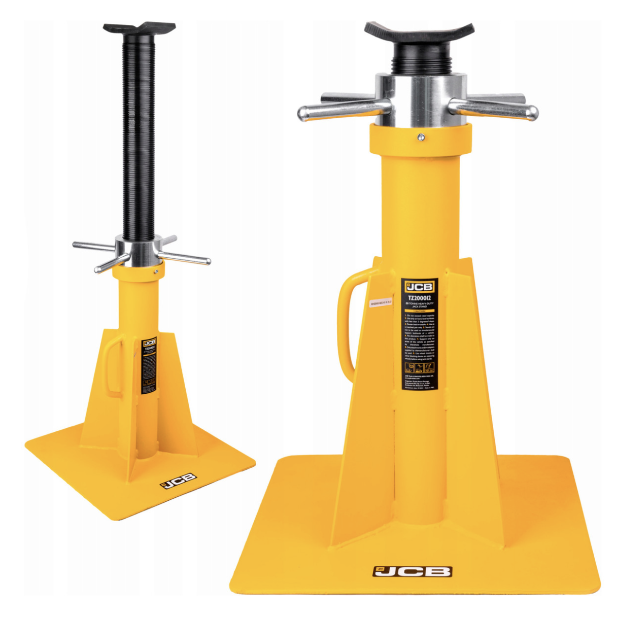 The JCB 20 Tonne Vehicle stand, JCB-TZ200012 – is an additional support tool designed to maintain a vehicle at the required height with a maximum weight capacity of 20 tonnes. It is used in conjunction with various types of jacks, lifts, and similar equipment.